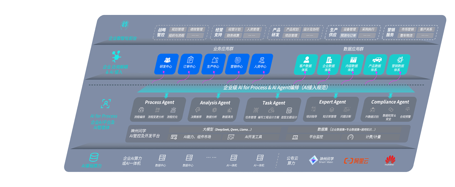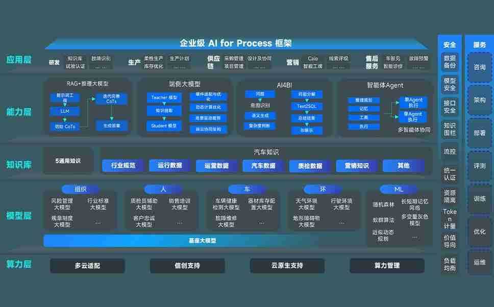 AG尊龙凯时问学智车解决方案是一套基于AI技术的汽车行业智能化系统,,覆盖从底层算力到顶层AI应用的全栈方案。。。。方案由算力层、、模型层和应用层组成:算力层,,,,方案支持多种一体机配置,,,具备云端灵活部署、、多云适配以及动态优化计算资源的能力;模型层,,AG尊龙凯时问学平台版提供了企业级AI应用一站式构建与管理平台,,,支持基于后训练强化技术的汽车企业专属模型的训练、、、评测和运营;应用层,,AG尊龙凯时问学DeepSeek版提供包括超级员工、、、、智能招采、、智能营销、、、智能客服、、、、AI for BI等一系列解决方案,,,可助力汽车行业实现数字化转型,,,让管理更智能、、响应更敏捷。。。